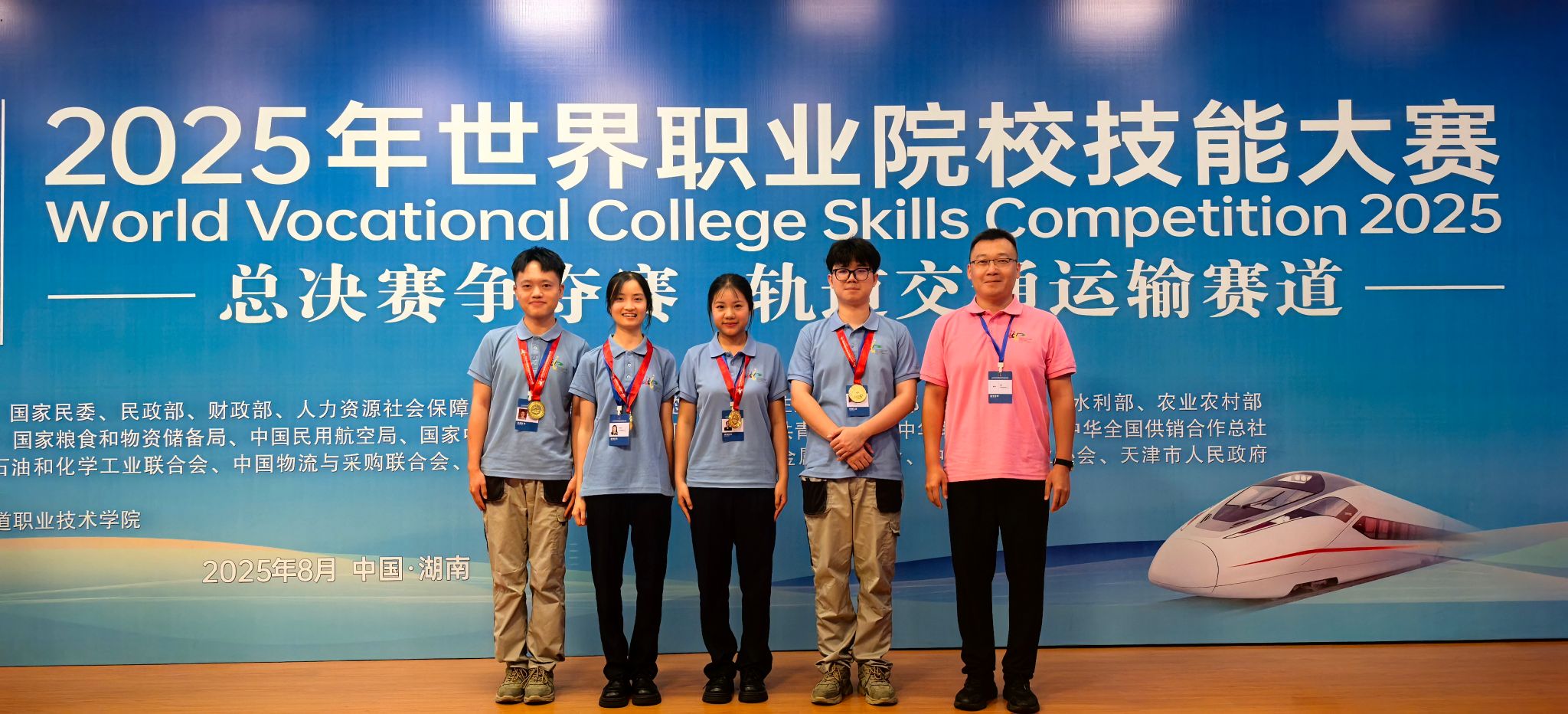 8月28日至31日,2025年世界職業院校技能大賽總決賽爭奪賽軌道交通運輸賽道在湖南賽區拉開帷幕,來自全國各地的155支參賽隊伍同臺競技。我校汽車學院城軌專業2支隊伍參賽,最終榮獲1金1銀的好成績。