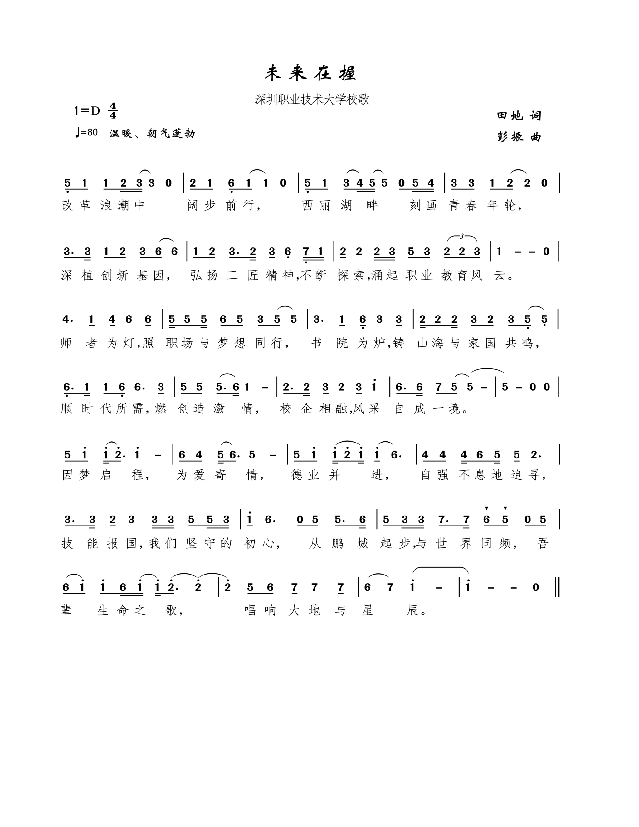 校歌《未來在握 》D調(diào)伴奏 下載